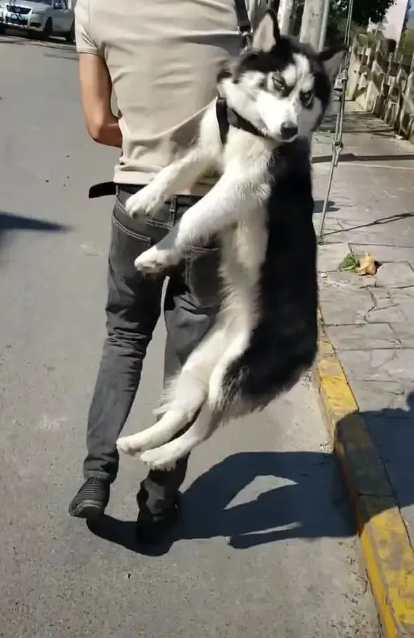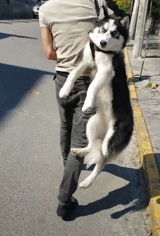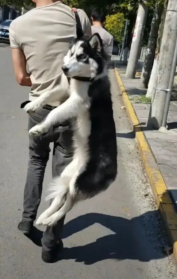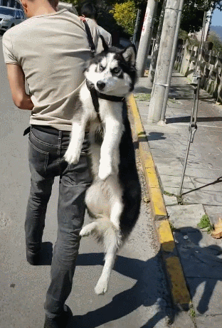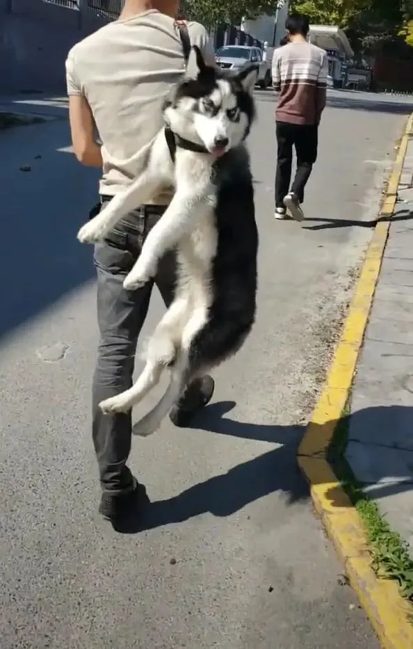 二哈被这样给吊起来,肯定是因为耍赖导致的,如果是一只听话的狗狗,主人应该不会这样吊着它,用这样的方式强行拉它回家,只有那种不听话的狗,主人才会狠心这样对待它。