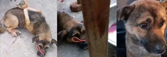 ▼后腿被恶意勒住,在高速流浪的小卷毛