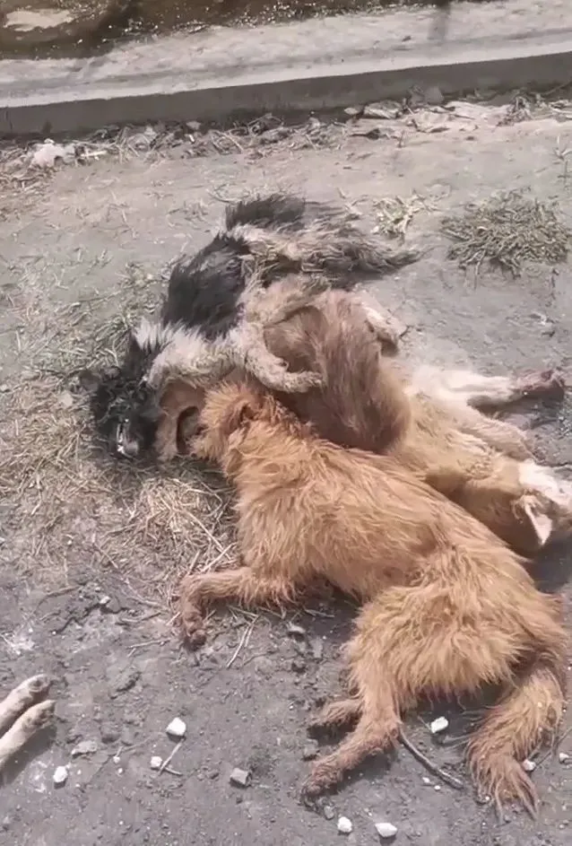 ▲毛孩子们在等待,等待什么时候可以开饭 平日里可以捡些学校的剩菜剩饭,但学校响应国家光盘行动,捡来的饭菜寥寥无几,寒假期间更是彻底断了支援。