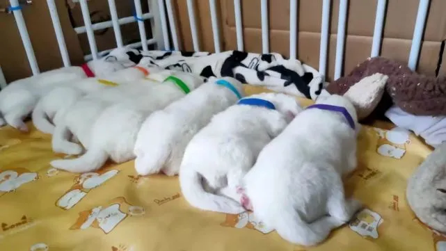 因疫情防控需要,家住嘉定徐行的苏女士近期在单位进行封闭管理,而她家的2条萨摩耶前不久刚下了一窝小仔无人照料,苏女士每天只能通过自家的摄像头查看家里的情况。此时,多亏热心邻居盛亚明的定时投喂,让一窝小奶狗健康无恙。