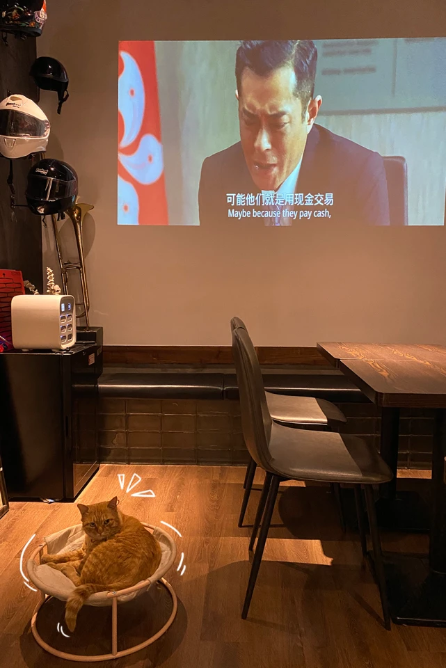 疫情期间,陪主人在店里看电影,也是属于猫咪的职责哦!