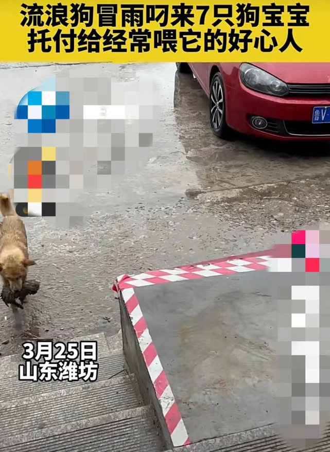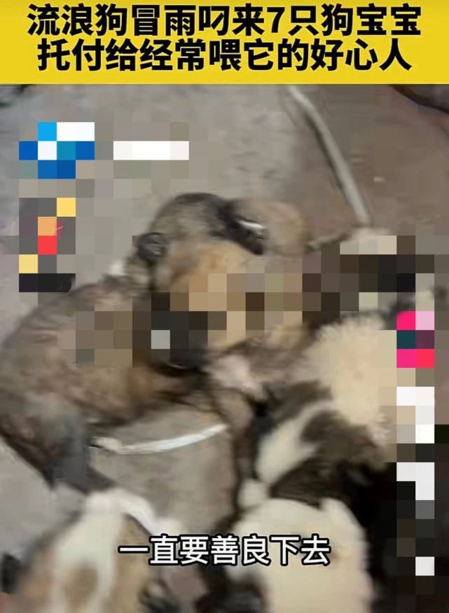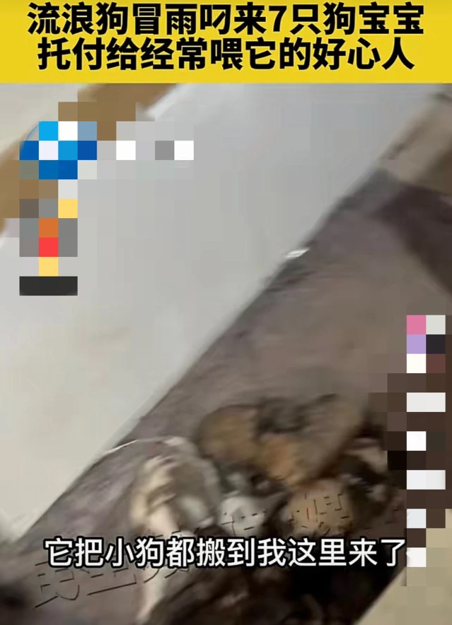 近日山东潍坊发生了一件让人超感动的事儿。下雨的天气,有一只流浪狗在外面生了7只狗宝宝,它为了狗宝宝有个落脚的家,它冒雨把狗宝宝都叼到经常喂它的好心人家里,把狗宝宝托付给好心人养,你猜主人收不收呢?
