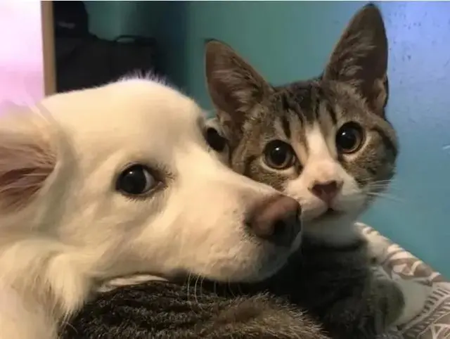 想必有不少铲屎官经历过这样的瞬间: 明明养了一只猫,但这只猫却频繁发出狗叫声,并且模仿得十分形象生动。 那么,猫咪学狗叫到底是为什么呢?想要表达什么意思? 猫咪学狗叫,其实是一种“模仿行为”。 如果你家的猫咪跟狗狗一起长大,或者说猫咪在成长的过程中,有过跟狗狗一起生活的经历。 那么,猫咪就会不断模仿狗狗的一些行为,包括狗狗的叫声。 之前在网上看过一个帖子: 网友家养了猫,还养了只兔子。 虽然说猫咪跟兔子是天敌,但网友家的那只猫不仅特别黏着兔子,还会模仿兔子走路的姿势,吃饭的样子。 猫咪跟兔子一起生活了1年多时间,猫咪走路开始蹦蹦跳跳,而且猫咪还爱上了吃胡萝卜、黄瓜。 这就说明,猫咪的潜意识里,有着很强烈的模仿心态。