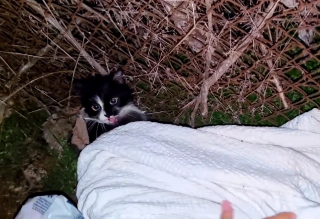 是这只奶牛猫自个儿钻进袋子里的吗?想必不是的,它还不至于给袋子打上死结! 这又是一只被人捉弄的流浪猫,幸运的是它还只是遭遇“恶趣味”,不幸的是它又一次难以相信人类。 甭管铲屎官如何努力,这只正处于惊恐中的小猫,即使此前与铲屎官相识,都不愿意从缝隙里爬出来。