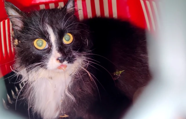 奶牛猫是铲屎官在垃圾桶里发现的,当时它因为身上绑着垃圾袋,没法跳出垃圾桶,因此在那儿发出无助的喵叫声。 那时恰逢铲屎官出来给街上的流浪猫喂食,他也就发现了桶里的奶牛猫。