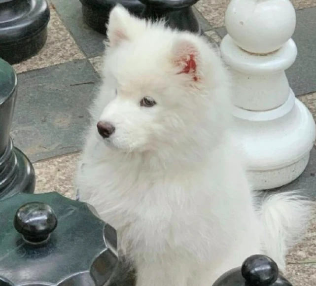 就有这么一位网友,家里养了只萨摩耶。这一天网友带着萨摩耶出去玩,在路过一个公园的时候,发现在那里有一个巨型的国际象棋呢!那些棋子的个头,和萨摩耶差不多大小呢!萨摩耶趁主人不注意,就跑到了其中白色棋子的一方,这看过去差一点没认出来,以为萨摩耶就是棋子呢!