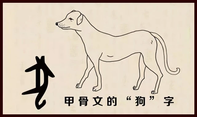 甲骨文的“狗”字,准确地说应该是一个象形字“犬”(如下图),细长的身体,长长的尾巴,一看就知道是一只善于奔跑得好狗。