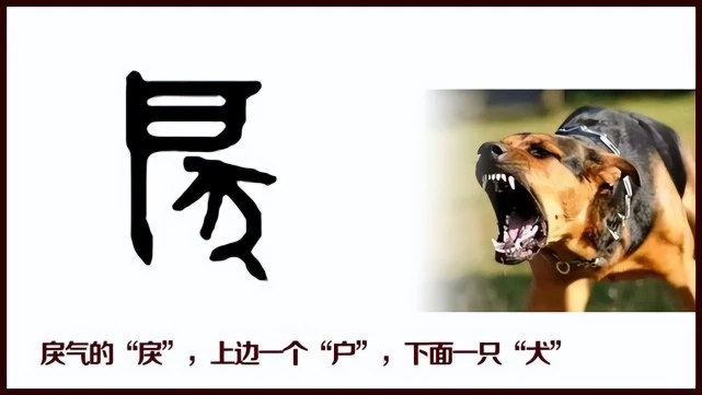这些犬字旁的汉字,是古代人们狩猎生活的生动写照,也能反映出古人和犬的关系是非常亲密无间的。文学作品《西游记》中有哮天犬的形象,也是和它的主人二郎神关系非常好。 再来看一个有意思的字,戾气的“戾”。上面是一个代表房屋的“户”,旁边有一个犬,表示的是狗在看门时候遇到外人时候,那种极其凶恶的形象。如果有类似生活经验的人,相信通过画面想象,可以感受到那种气氛。