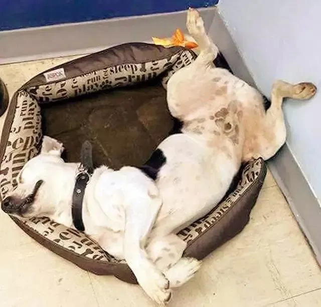 戈尔吉已经成为了一只出色的警犬,不过在平时的生活中,它其实还是一只很二的狗狗,从它的睡姿中就能看出来。