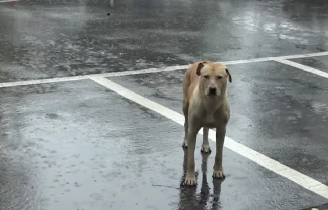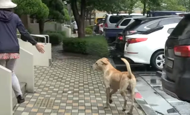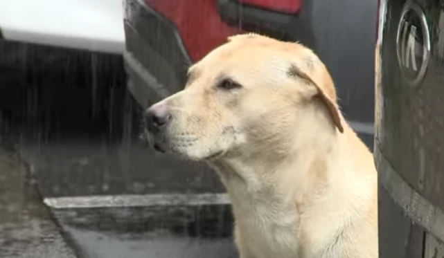 可是幸没有进去,它一直在外面等着看女士进入家门,女士因为担心幸没地方避雨,于是一直不愿意进门,此时幸看见女士一直没有家门,它便一直站在雨中看着女士。