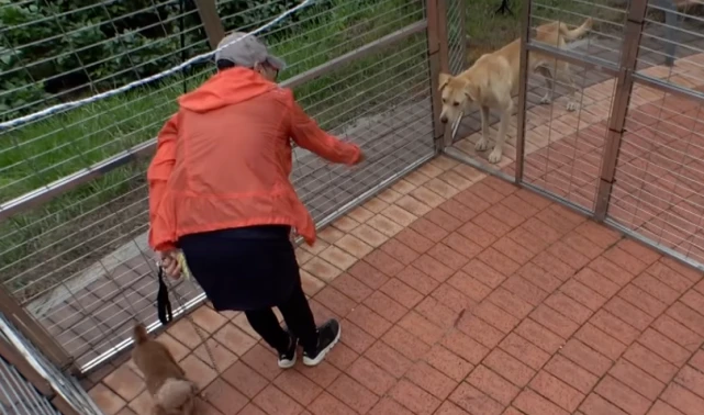 接下来幸来到一群正在一起牵着爱宠出来玩儿的人,幸走过去跟它们打招呼,其实刚开始的时候,幸会害怕周围的人,不愿意接触身边的人类。