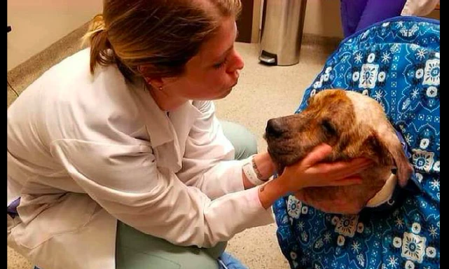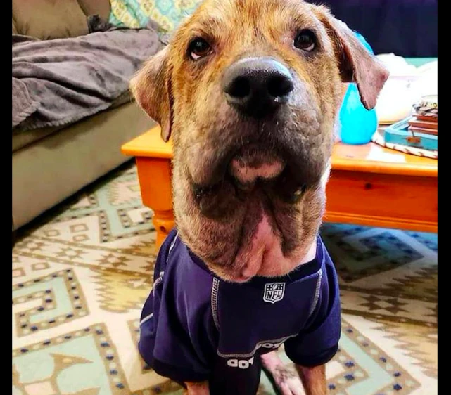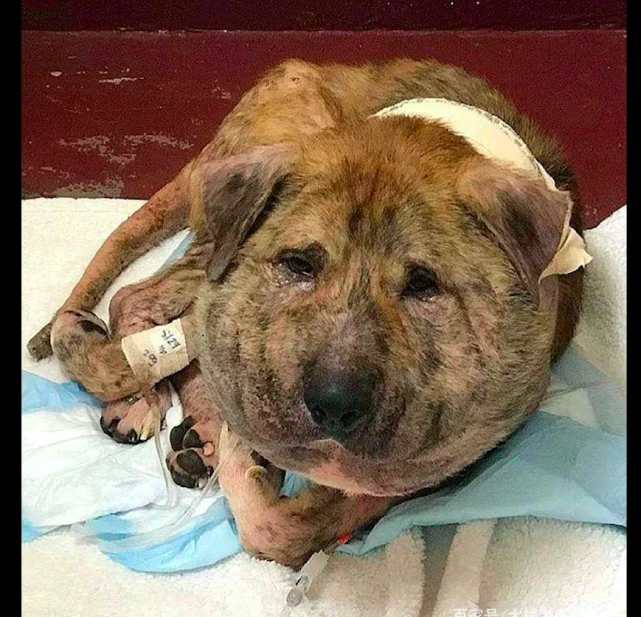 很快医院便给狗狗安排了手术,术后它肿胀的脸终于是憋下去了。不过由于脖子长时间被憋着血流不通,下巴的皮肤有明显的松弛,看起来还是有点奇怪,不过只要是经过慢慢的治疗,它肯定会成为一只正常的狗子的!而还有一个好消息,有一对年轻的夫妻听说狗狗的遭遇后,就申请领养了它,狗狗将会在它的新家中继续康复了。也许是之前的经历太痛苦,狗狗被救助后还总是一副哭丧着脸,希望它能尽快忘却以前的伤痛吧!