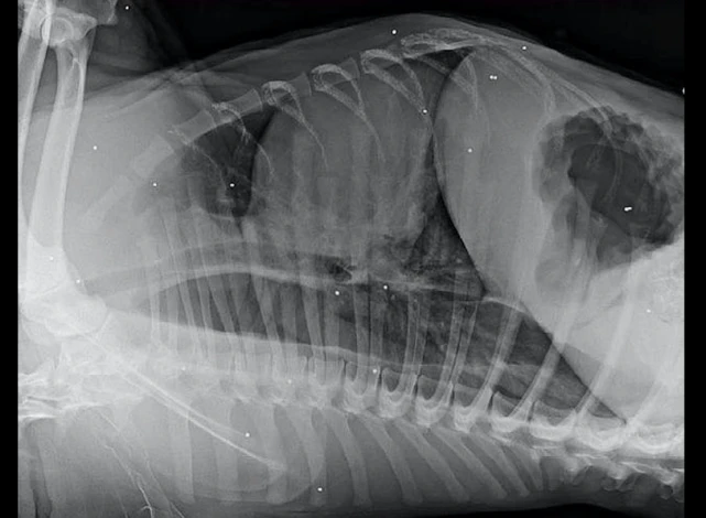 而经过医生的一番检查之后,才知道脸肿的原因。罪魁祸首就是它脖子上的一根鞋带,不知道是谁死死系上了死扣。很明显这并不是牵引绳,而是有人故意而为之,想要将它置于死地啊!除此之外,在给狗狗拍片后,发现它的体内还有子弹碎片!它之前到底是经历了什么,又是被系绳又是被当靶子。唯一值得庆幸的是,狗狗逃掉了所有的噩运还活着,现在被救助,就还有生活下去的希望!