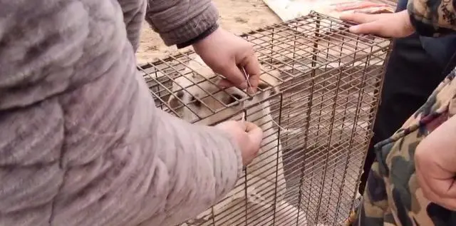 在拉布拉多绝望的目光中,狗贩子赶忙将狗肉笼绑住 之后,当狗贩子的同伴将狗肉笼准备好,狗贩子准备将手里的拉布拉多往笼子里装时,这只拉布拉多开始剧烈地挣扎了起来,见到狗狗挣扎,一旁围观的狗贩子也赶忙过来帮忙,但是因为狗狗的挣扎太过于厉害,狗贩子的第一次尝试很快就失败了,可是,不甘心的狗贩子在短暂地休息之后又立马再次尝试了起来,这次,两个狗贩子抓着狗狗就要将它往笼子里塞,但是,在笼子口,闻到气味的拉布拉多就再次挣扎了起来,哪怕一旁狗贩子的同伴用脚踹它也没能让它松开扒在笼子口的爪子,无奈之下,狗贩子只好再次放弃……