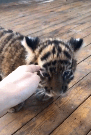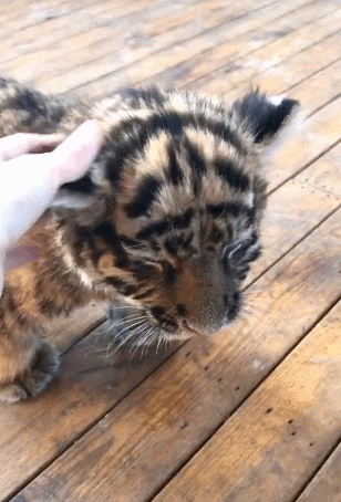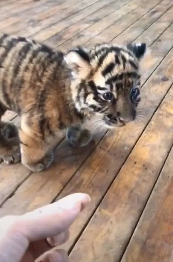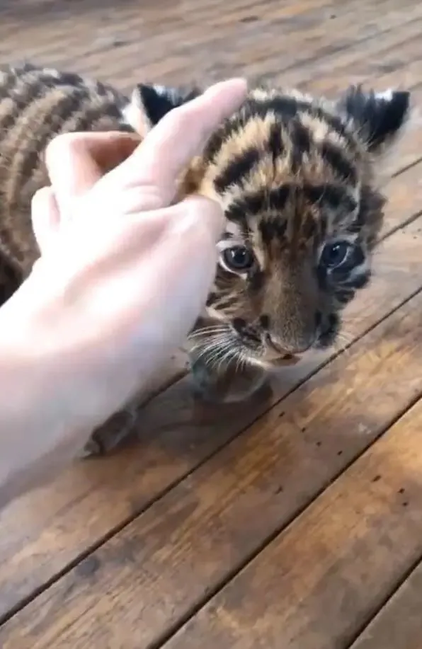 小老虎在接受抚摸的时候,真的是很安定,在那里定定的,而它的腿又很短,简直就像是一只柯基一样,不过,这么小的老虎,也是刚刚出生不久,如果再过几个月,就会变的不一样了。