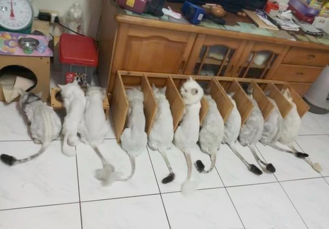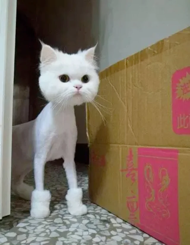 我有一个养猫朋友,最近他做了一件“大事”。 趁着爱人不在家,他偷摸地把猫咪带去宠物店,把猫咪身上的毛发全都剃光了。 大概就像上图中的样子,只给猫咪留下了头部、尾巴以及四肢肉垫位置的毛发。 当他妻子回到家里,看到猫咪身上“光秃秃”的模样,又气又笑。 气是因为丈夫没有常识,不懂这么做会给猫咪带来一些伤害。 笑是因为,剃光毛的猫咪大概是被吓到了,闷闷不乐地缩在角落里;但看到猫咪这个滑稽模样,实在是让人忍不住想笑。