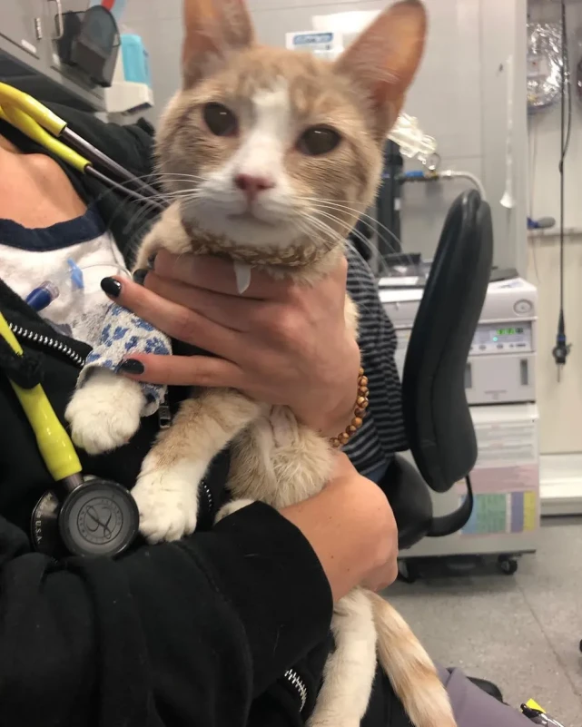 克莱顿的情况确实非常危急,兽医经过检测之后表示,当时估计只有八个月大的克莱顿体温已经降到了危险水平,过轻的体重让它的身体也很虚弱,再加上贫血、舌头上有溃疡、上呼吸道感染、肺炎以及其他的一些健康问题,简直就是濒临死亡的状态。 经过几个小时的生死抢救,克莱顿总算是从死亡线上被拉了回来。