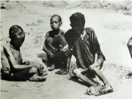 全是饥荒。20世纪40年代,法国驻越南行政部门采取经济改革,减少国内玉米和土豆种植,转而种植棉花等经济作物,再加上日本军队对越南农民征收粮食税,禁止种植水稻和黄麻,剥夺了他们的粮食,最终导致200万越南丧生。其他越南人为了生存不得不把所有东西都变成食物。 越南独立后,人们的生活越来越好,狗越来越多地被用来做看门人或猎人,为了消除吃狗肉的罪恶感,一些人开始宣扬狗肉可以驱邪避灾、改变命运。在这样的情况下,人们对狗的需求不断增加。于是,狗便成为了市场上的抢手货。在越南战争期间,人们经常看到一些人把狗关起来卖给外国人。当时,越南人很迷信,所以他们开始听这个故事,开始吃狗肉。因此,吃狗肉的习惯一直延续到今天,形成了独特的饮食文化。 大饥荒时期期间因饥饿而消瘦的越南儿童