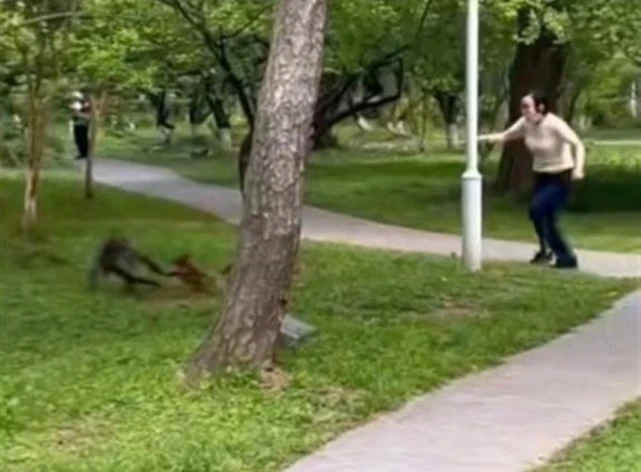 南京一高校现“泼猴”袭击宠物狗,狗主紧追救狗! 还记得2021年,在印度,一只野猴被一群狗咬死,愤怒的猴群发起了复仇之战,在曼杰莱加奥恩村至少有250条狗被残忍杀害,那血腥的画面相信很多人至今仍记忆犹新。 4月23日,网传南京理工大学校园内,一只猴子试图抓一只小狗,但最终没能得逞。 现场视频显示,一只猴子拖着一名女子的宠物狗就跑,女主人在后面紧追不舍,并不停冲猴子怒吼,但这只猴子似乎并不畏惧,将宠物狗放下后,朝女子奔去,并做出攻击的举动。此后,在女子不断驱赶下,猴子才离开现场。