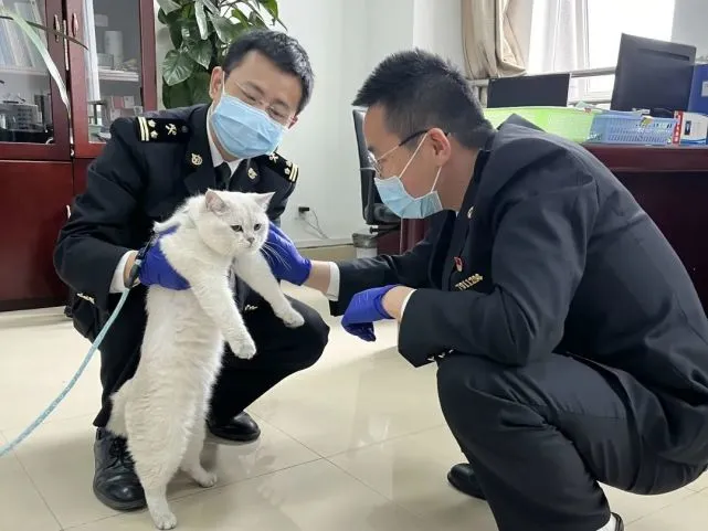“在国内隔离出来就买了它。”“饭团”的主人黄筱卫,常年定居加拿大,去年6月返乡探亲。4月22日早上9点,按照约定的时间,“饭团”和主人黄筱卫来到德阳海关,工作人员第一时间为“饭团”进行了申报录入。对宠物猫主人的护照信息、宠物的健康体检报告、狂犬病免疫证进行现场核对,随后对“饭团”进行电子芯片识别、临床检疫。检疫合格后,当天就为其出具了宠物出境“通行证”——《动物卫生证书》。