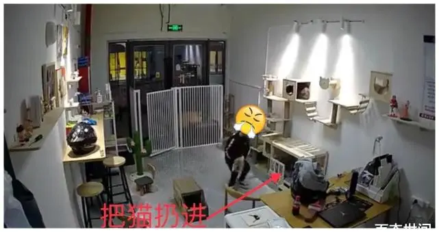 随后,意犹未尽的男孩走到另一旁摇动筐子,但里面空空如也,毫无所获。但猫舍里怎么会缺猫,很快,男孩在桌子附近又发现一只猫,上前逮住后,男孩竟使出九牛二虎之力将猫使劲抛向了高空,所抛高度直逼屋顶,幼猫反应不及,重重落下砸到地面,发出了一声闷响。