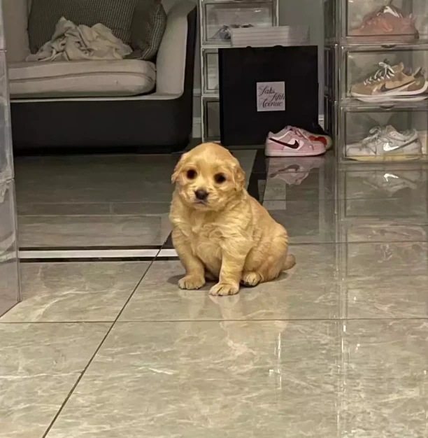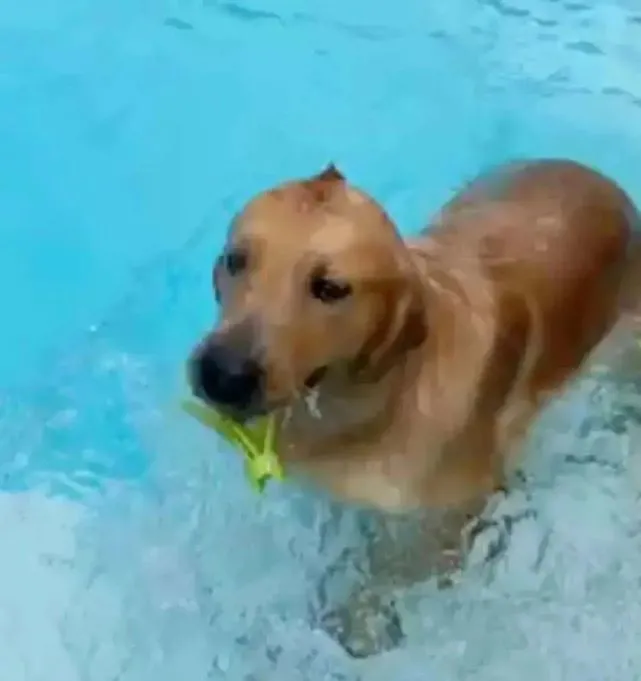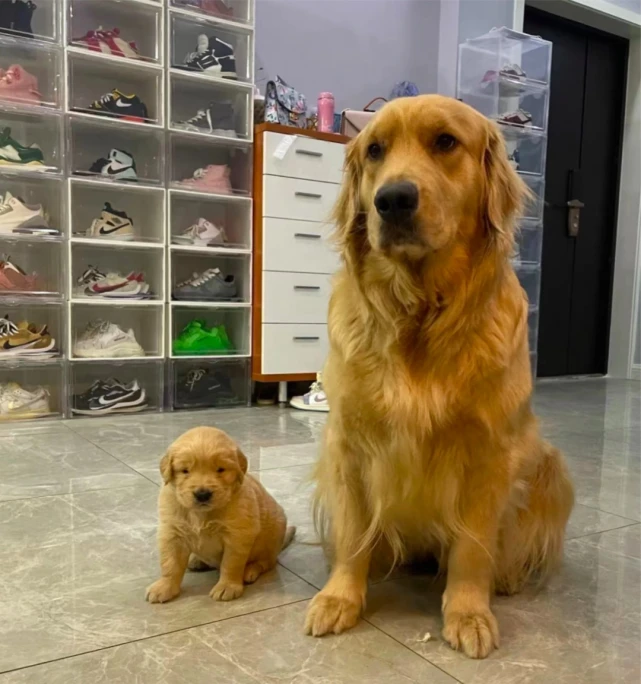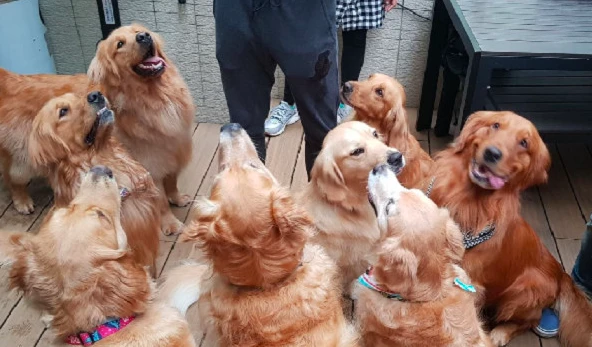 不过,小也有小的好处。 和一众金毛合照时,主人总能一眼就把它认出来。