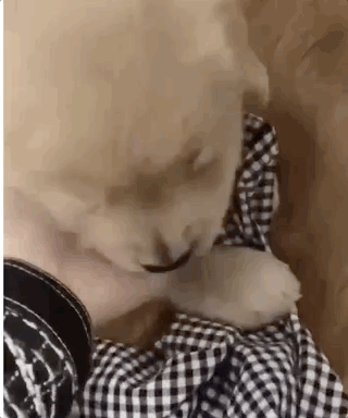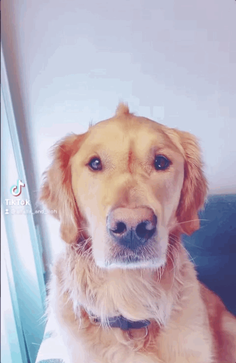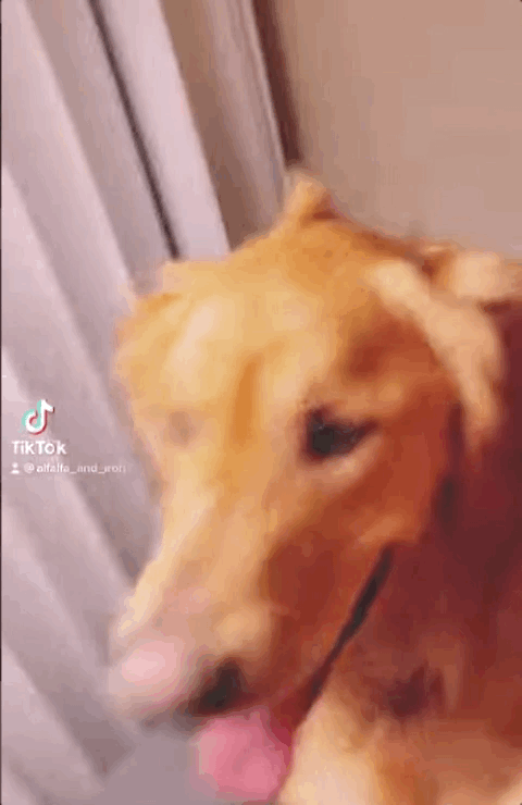 更好笑的是,狗蛋不光眼睛小,眼神也不好使: 看到主人回家,金毛妈妈的画风是介样的 “你回来啦,好开心呀!”