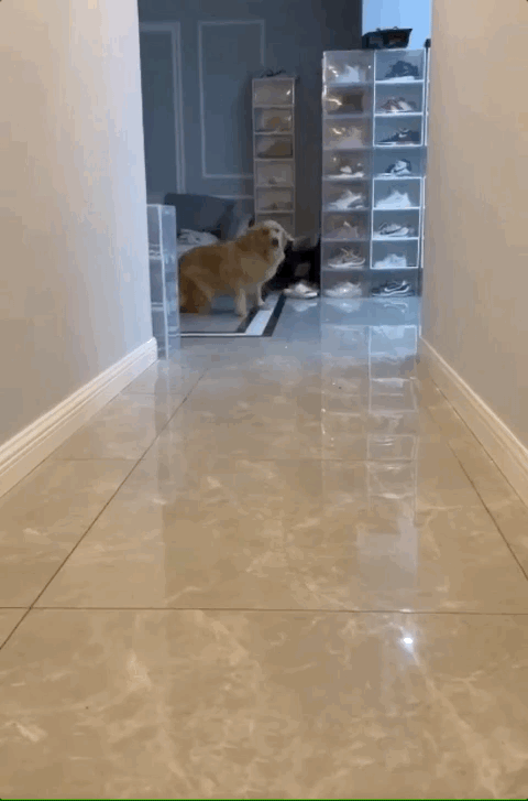 欢快的步伐,让人仿佛看到了偶像剧中的甜女主向自己飞奔而来。 狗蛋看到主人回家也很开心,屁颠屁颠地跑过去,然后…… 直接撞手机上了!