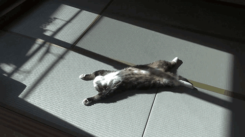 图自:giphy 那猫咪呢? 1998年,加州大学猫营养和宠物护理中心的9只小猫咪参与了这个实验,TA们被分为3组: ·第1组每天晒太阳15小时以上(4只); ·第2组关在室内不晒太阳(4只); ·第3组与第1组日照条件一致,只是将猫咪背部毛发剃掉了(1只)。 实验为期40多天,研究人员检测猫咪血浆中的25-OHD浓度,用于判断体内VD的变化情况。
