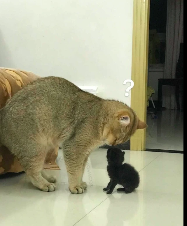 就有这么一位网友,家里养了只猫咪。前不久它怀孕了,生下了几只猫咪,而其中有一只猫咪很特别,因为它是全黑色的,和父母是完全不同的样子!可能小猫咪自己察觉不对,但是妈妈却是满脑子的疑问,都有点怀疑它到底是不是自己生的,每次路过都要闻一闻看一看确定一遍!