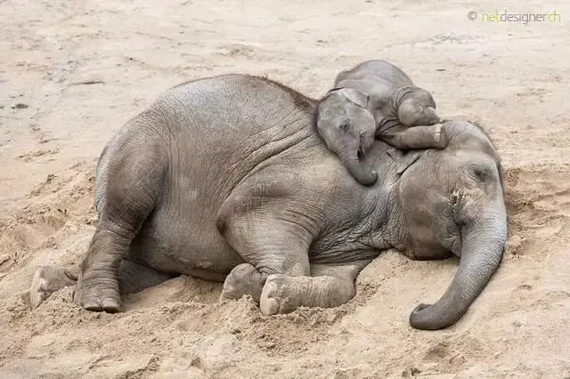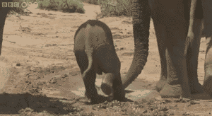 大象是非常聪明的动物,象宝宝刚出生就能站立,几个小时后,就可以跟随群体四处活动。 当然,会和熟练还有本质区别,幼年期的象宝宝常常会走不稳。 遇到个坑就会摔倒不说,