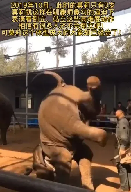 2岁时,莫莉被运往河南某动物乐园。还没断奶的莫莉不仅要被迫与妈妈分离,甚至还被爆出被迫接受训练。