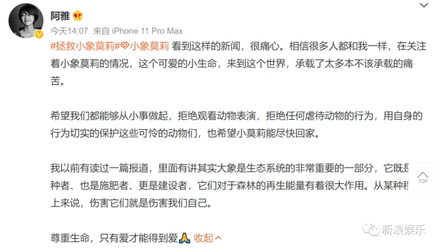 大众的情绪并未平缓,相反发声还在继续。如今更是有明星发声,加入声援行列。 阿雅,